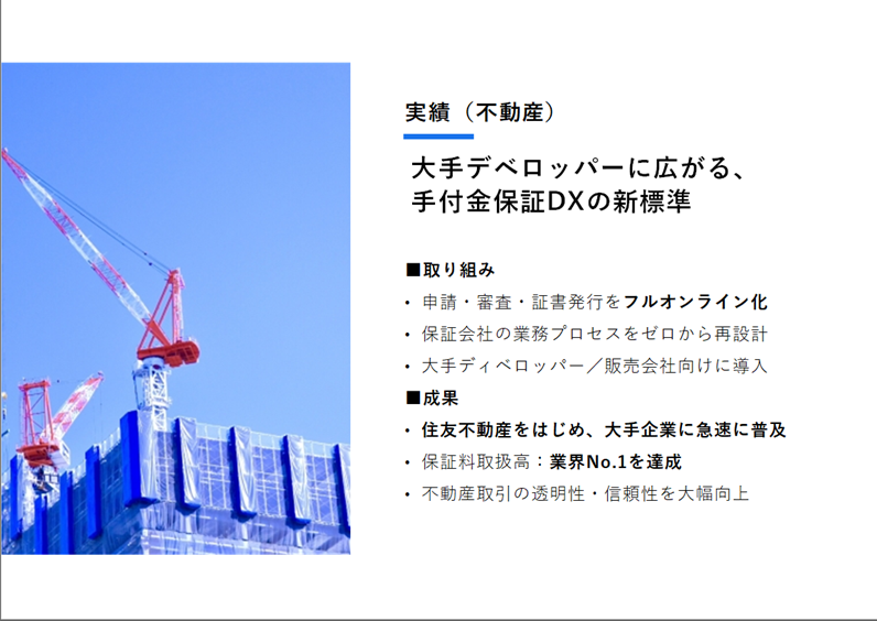 もう一つは、不動産売買の手付金保証DXです。