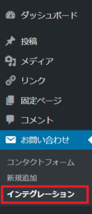 まず、ダッシュボードの[お問い合わせ]ー[インテグレーション]メニューをクリックします。
