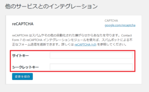 ContactForm7に取得したサイトキーとシークレットキーを登録する