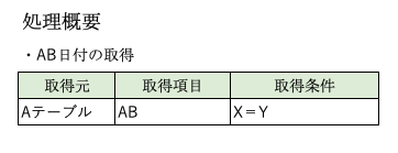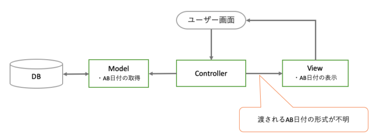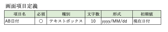 ここで、DBから日付項目を取得し、画面に表示するという機能を先に記載した画面定義書と処理概要を例に考えてみます。