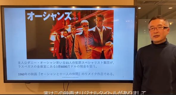「オーシャンズ11」はダニー・オーシャンという主人公が11人の犯罪スペシャリストを集めてラスベガスの金庫室にある1億6000万ドルの現金を狙うという映画です。実はオリジナルタイトルがありまして、それは『オーシャンと十一人の仲間』です。私たちのチーム名、オーシャン・アンド・パートナーズという名前はここからヒントを貰いました。