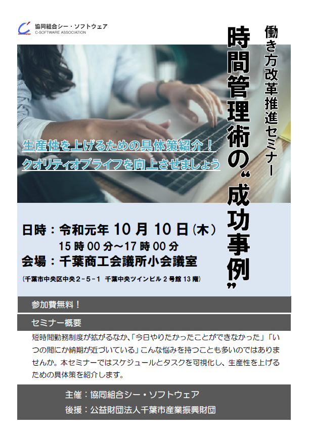 弊社代表(谷尾薫)が代表理事を務める協同組合シー・ソフトウェアにて以下のセミナーを開催します。
